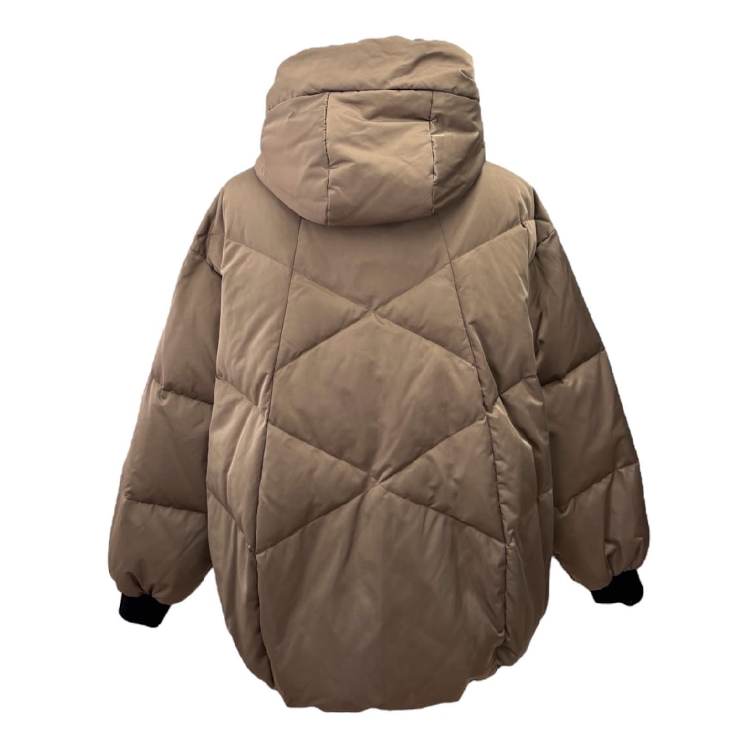 ayaneのコクーンダウンジャケットは、冬の定番アイテムとして大人気です。おしりまですっぽり包み込むデザインで寒い日も安心。