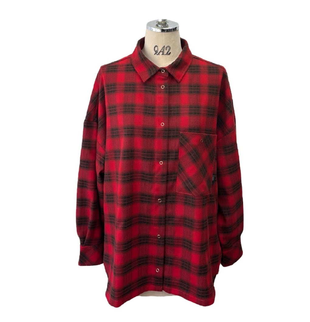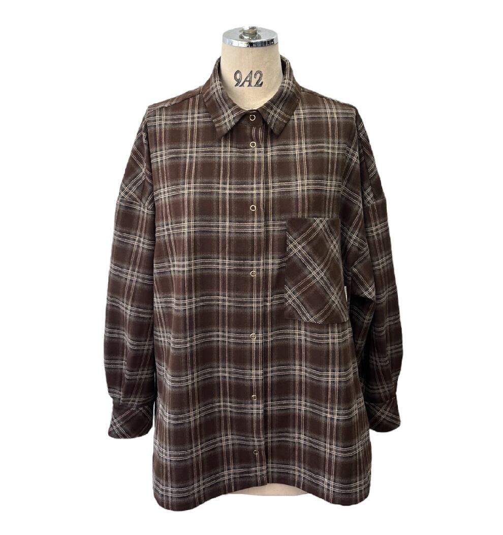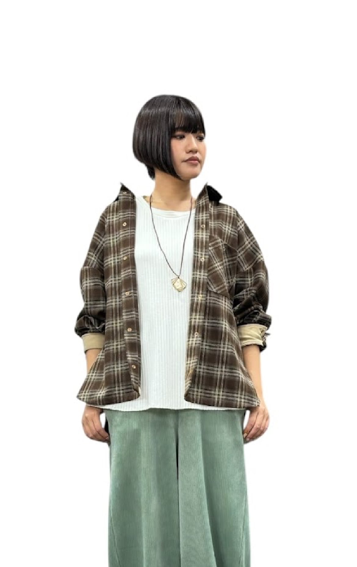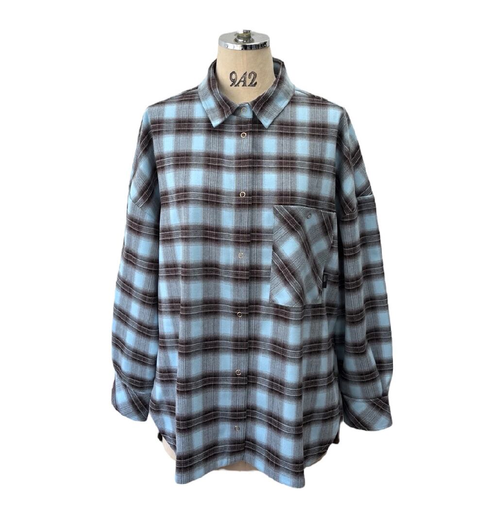 可愛い配色のチェックシャツです。 柔らかい微起毛素材なので、アウターのを着た時の