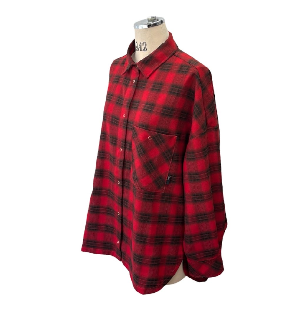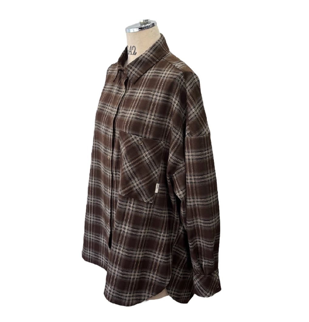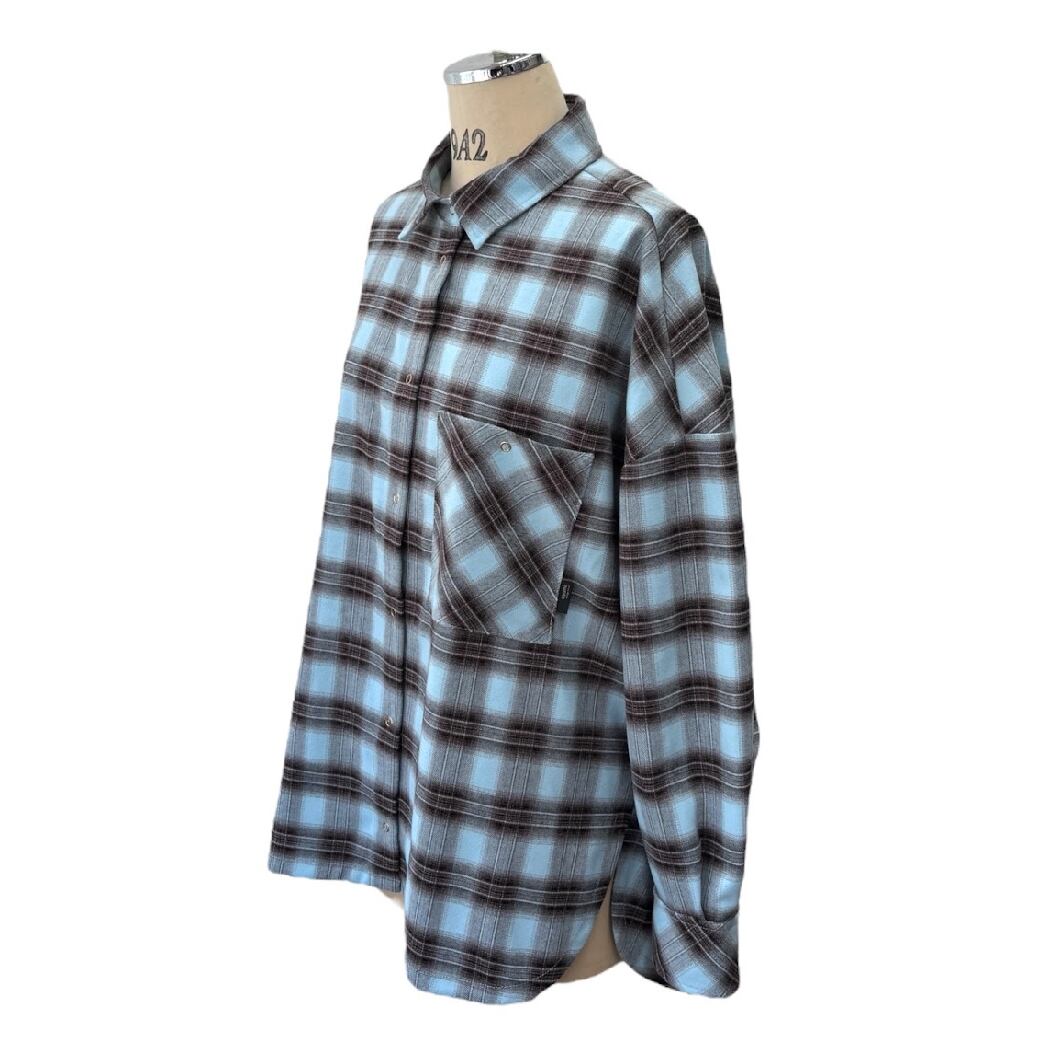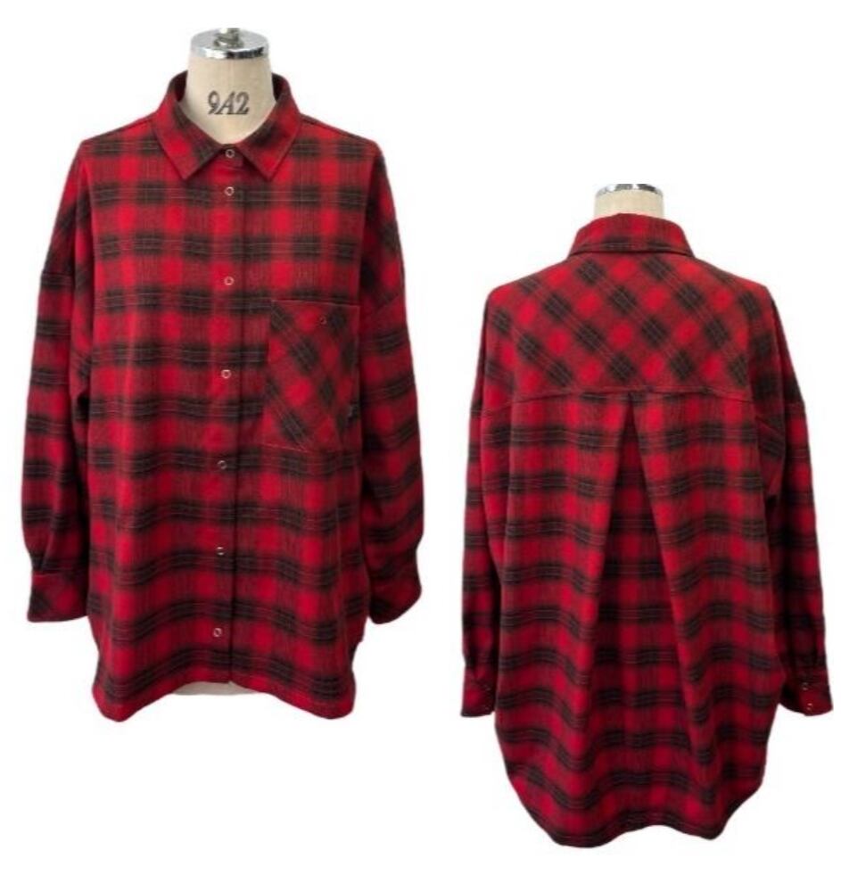 可愛い配色のチェックシャツです。 柔らかい微起毛素材なので、アウターのを着た時の