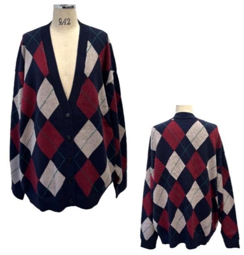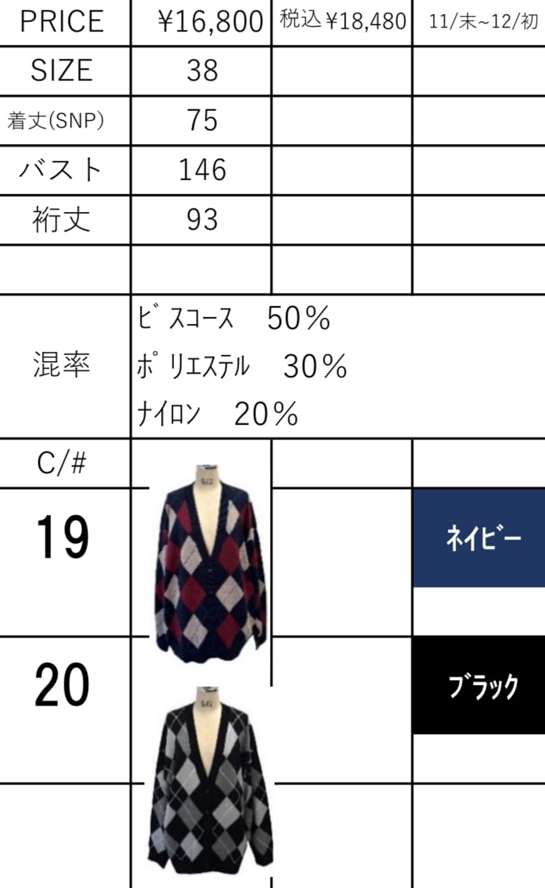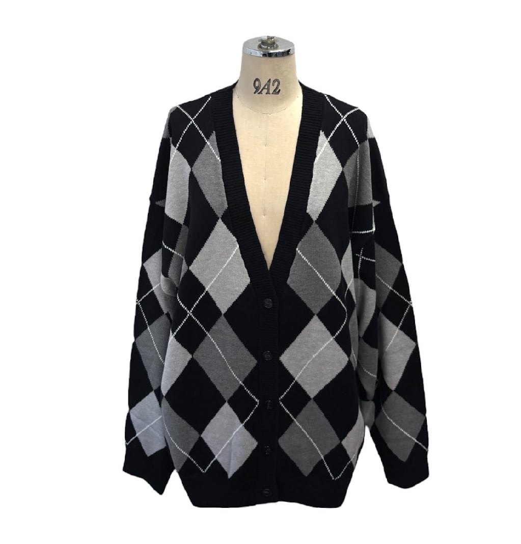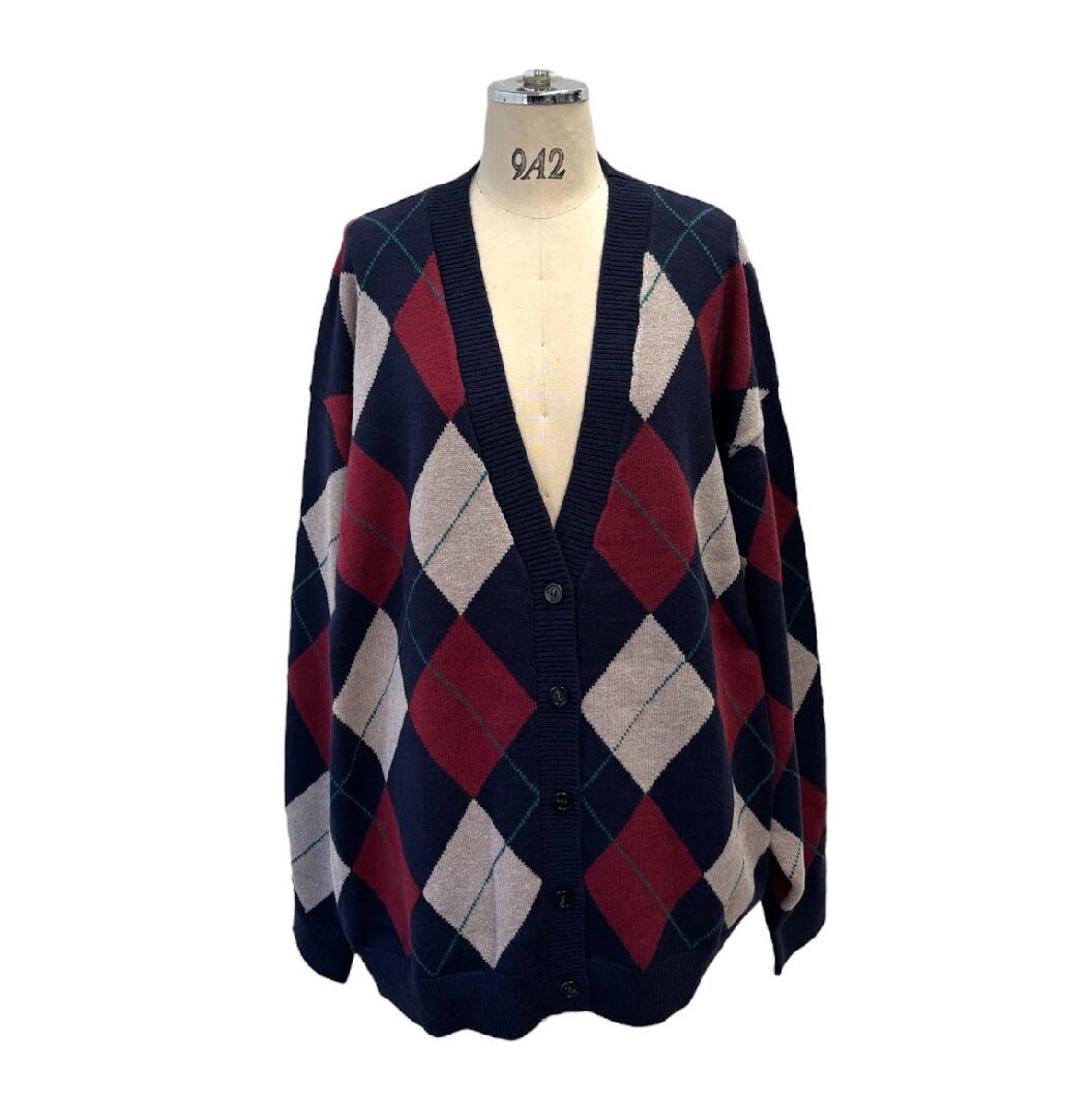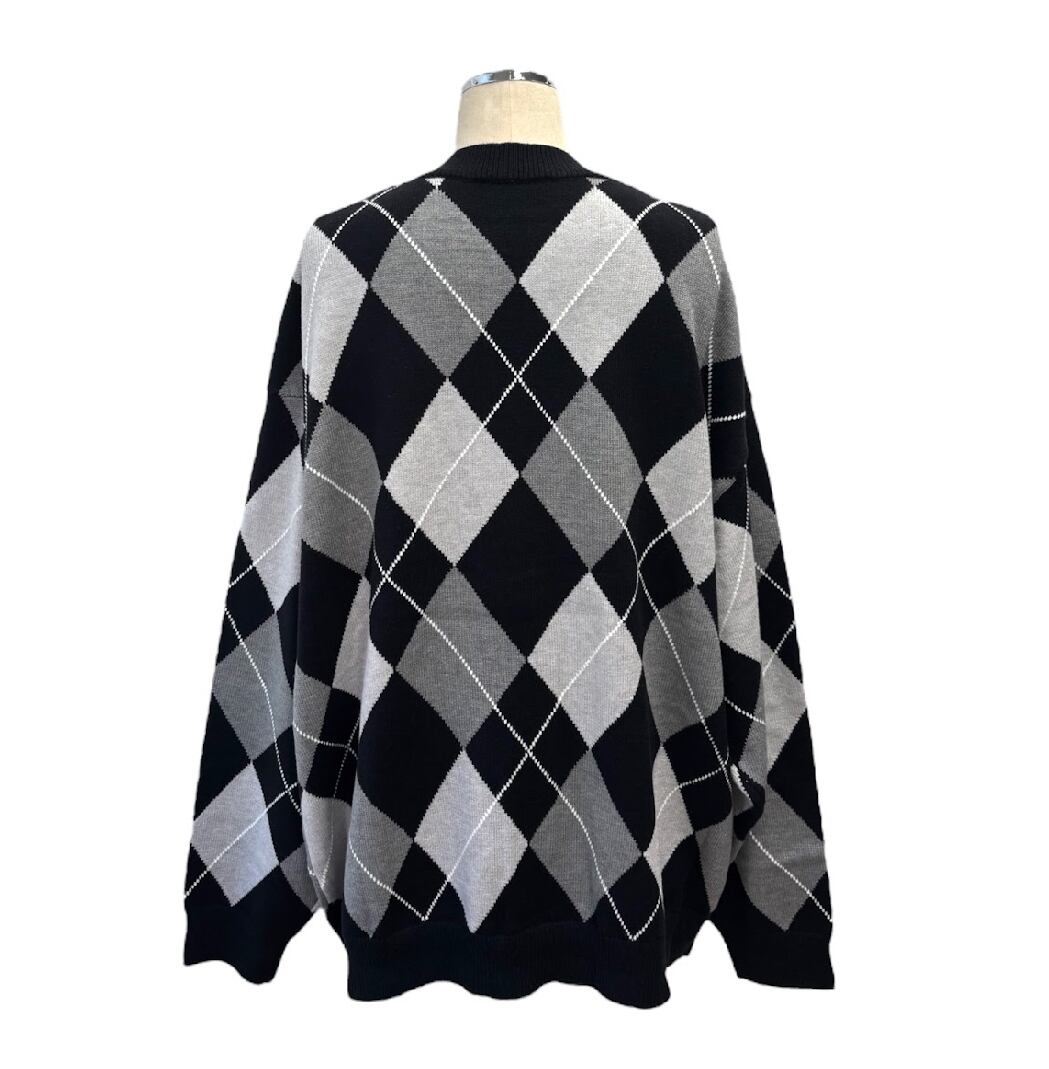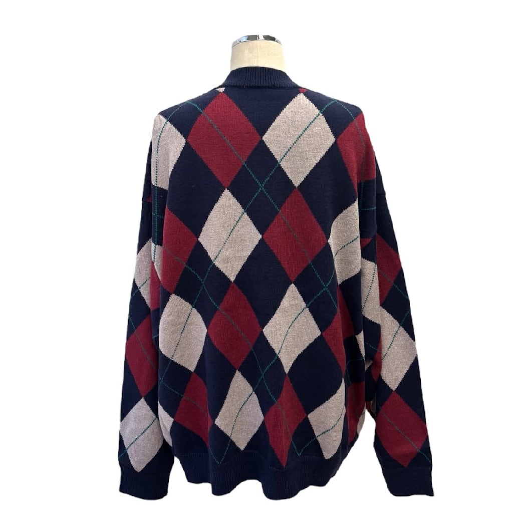 大きめのアーガイルチェックの注目度が高く、ゆったりサイズのカーディガンです。