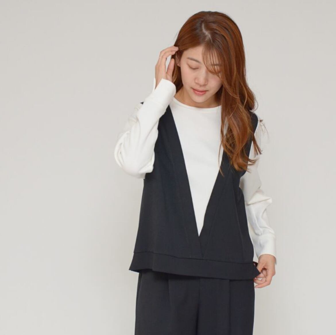 【Praia】一枚で即オシャレ ベストドッキングレイヤードトップス LEO-25104