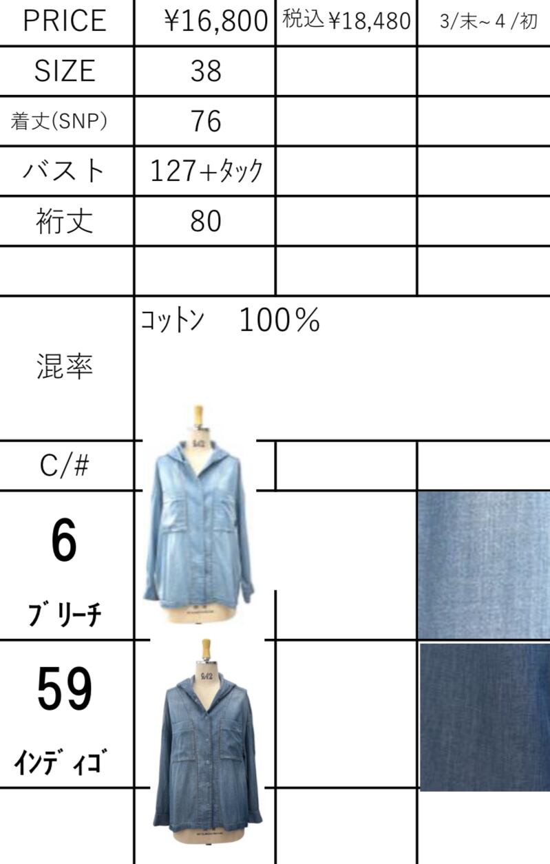 ayane spring 予約品 816302 シアーデニムフーディシャツ