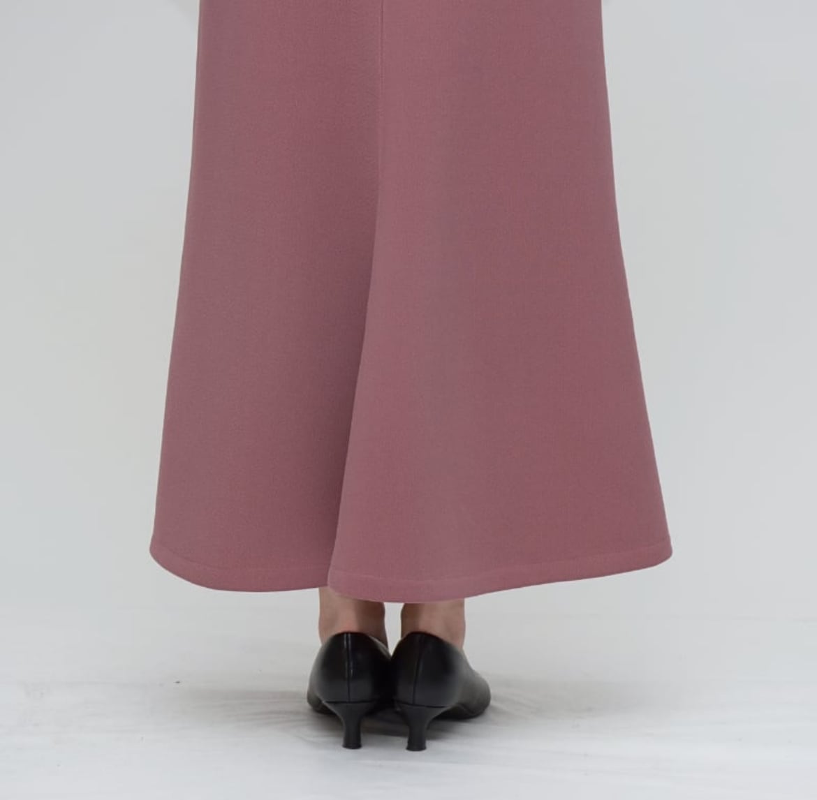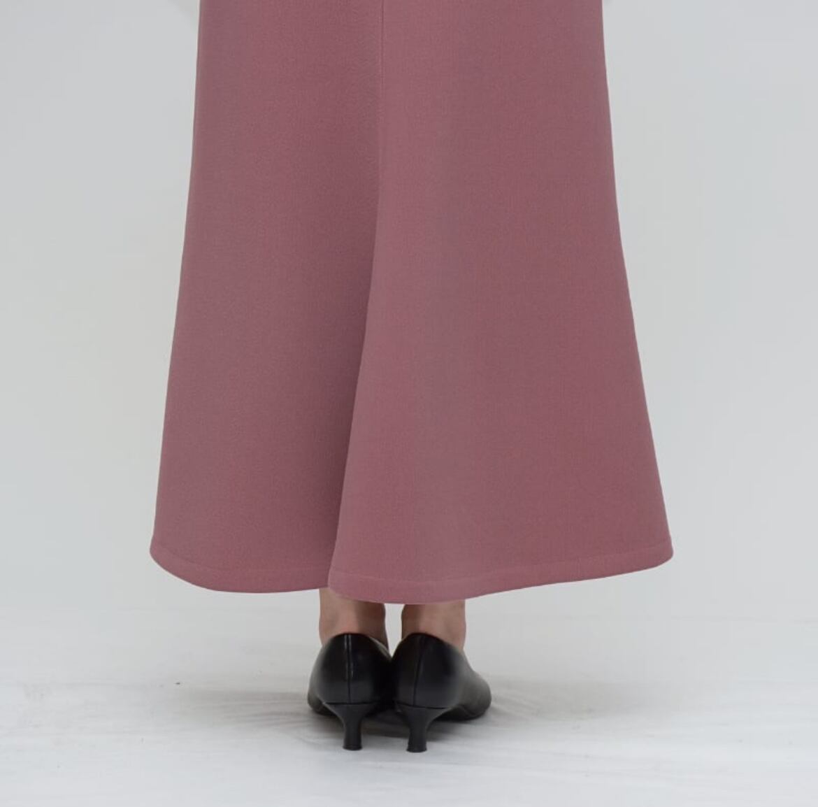 後は躍動感のあるバックフレアーシルエットが、歩くたびに優雅に揺れ、女性らしさを演出します。