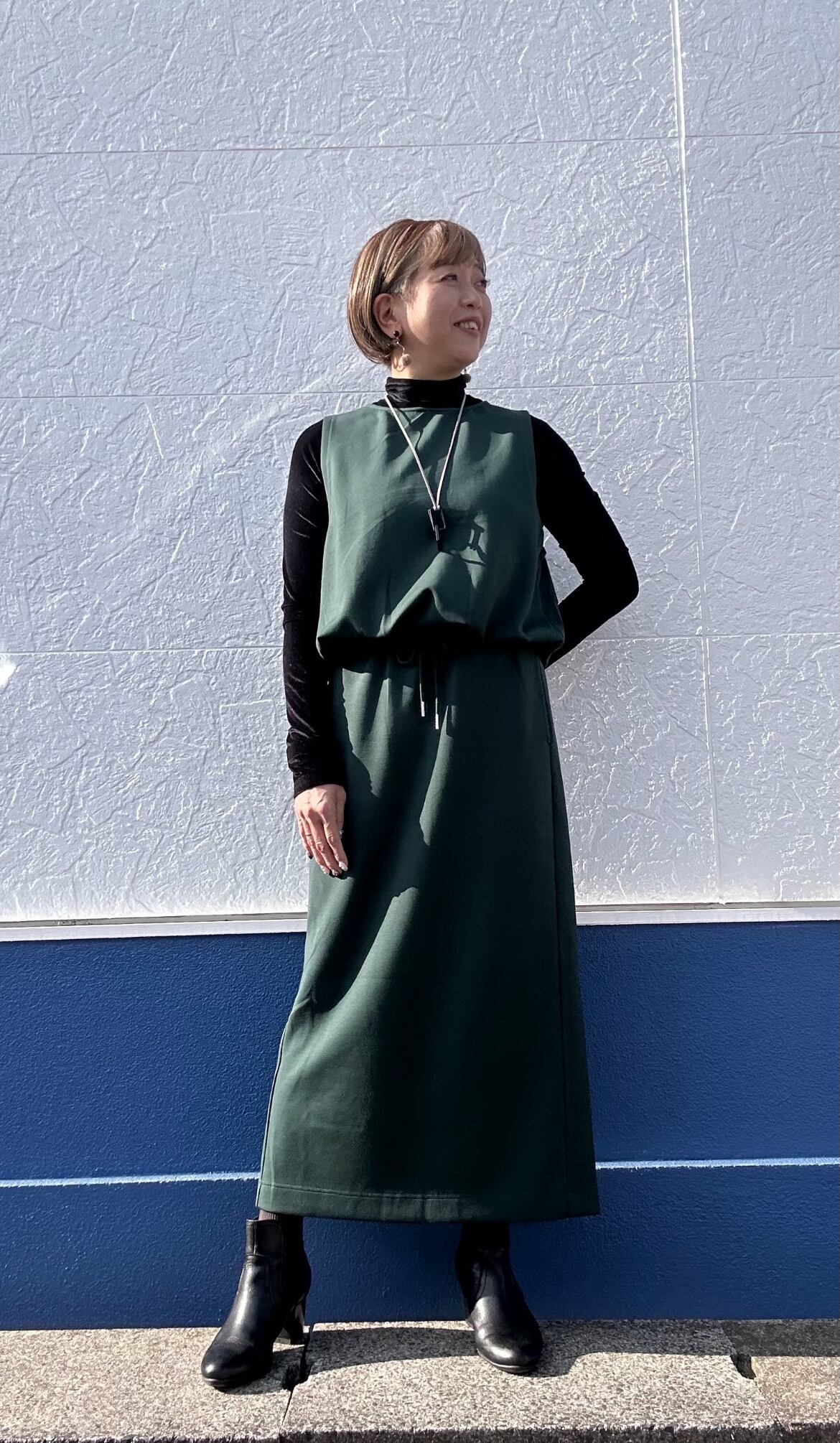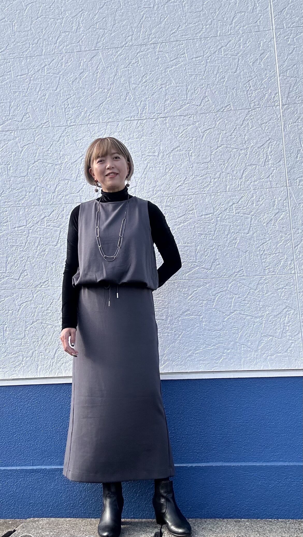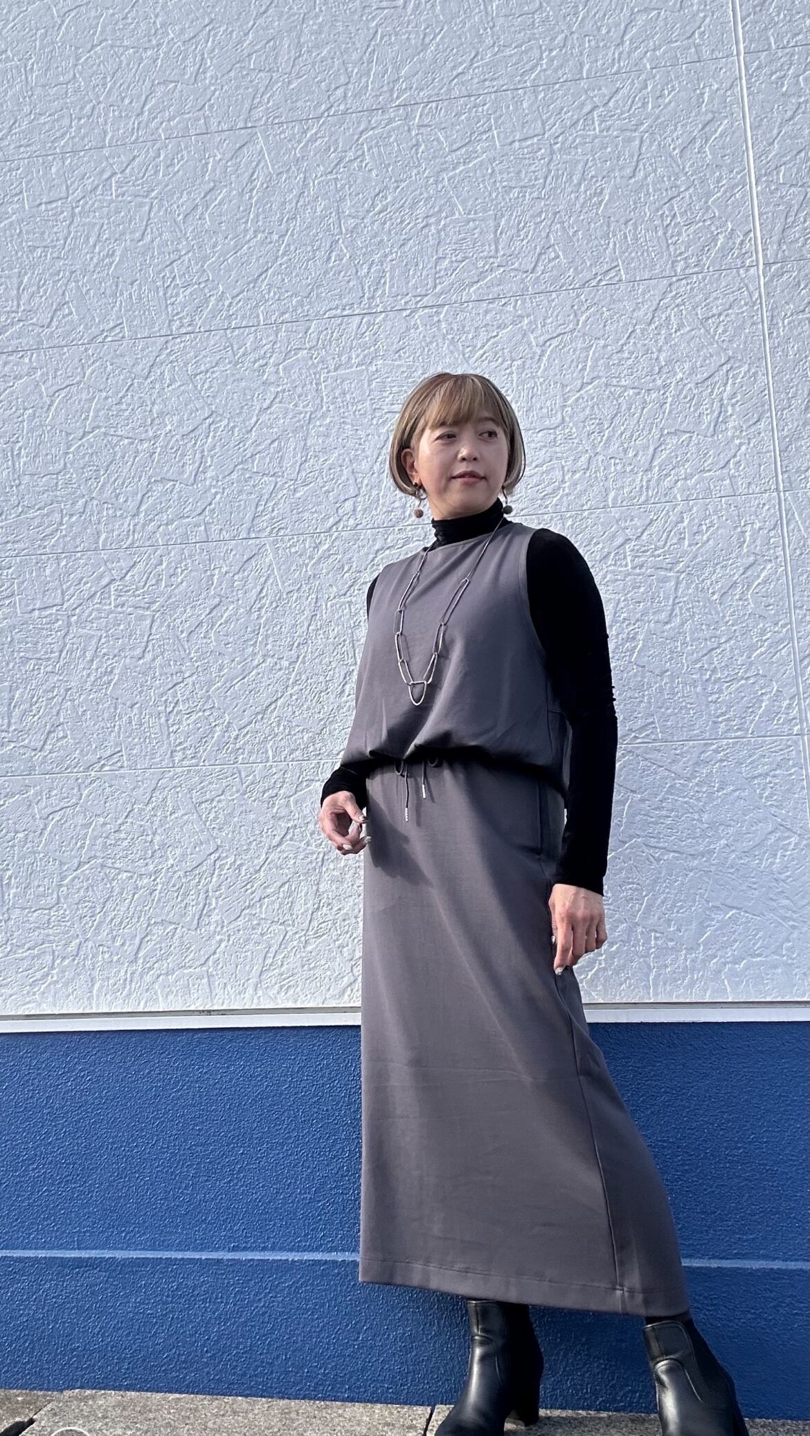 モデルは、164cmですがブラウジングする事で幅広い体型の方に着ていただけます。