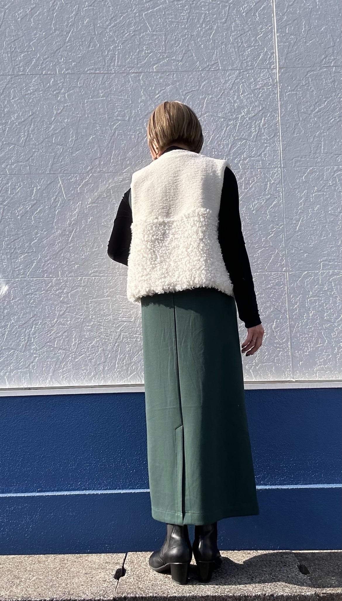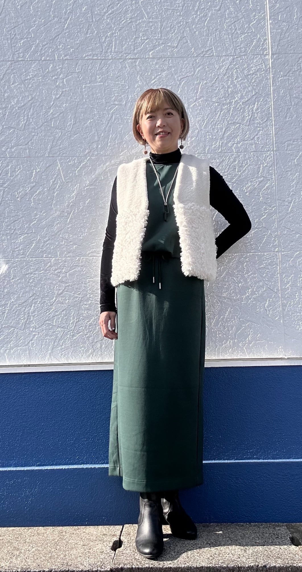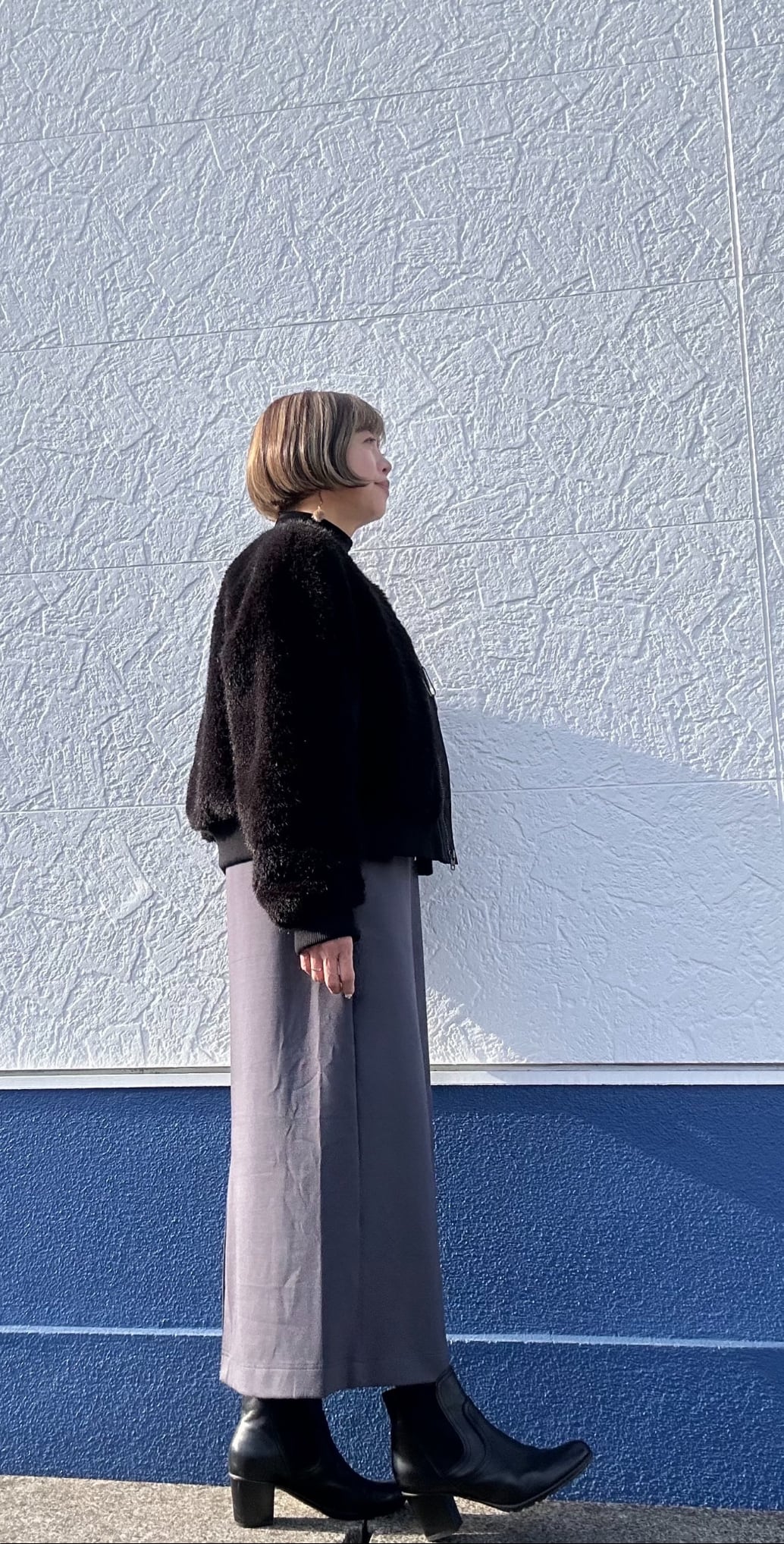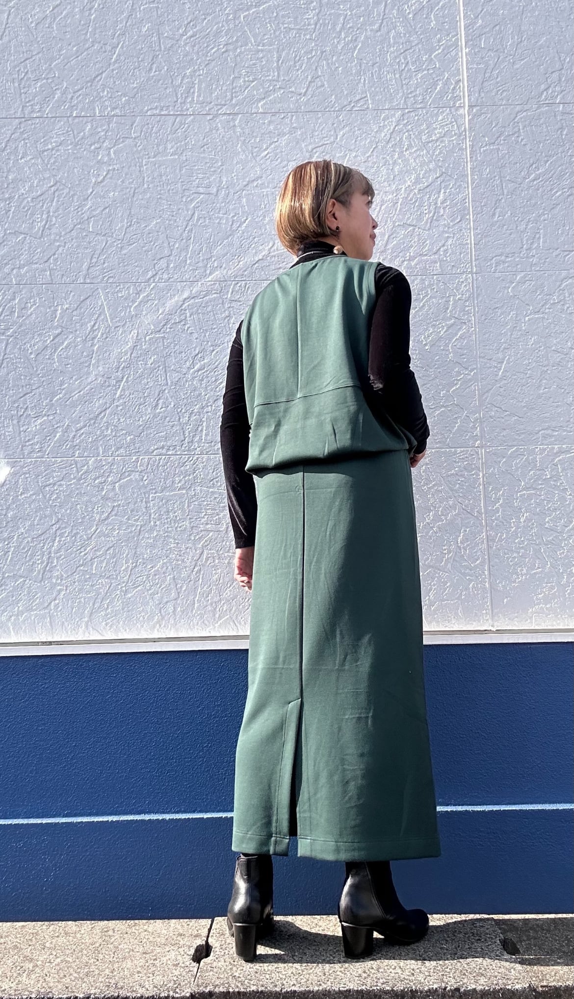 モデルは、164cmですがブラウジングする事で幅広い体型の方に着ていただけます。