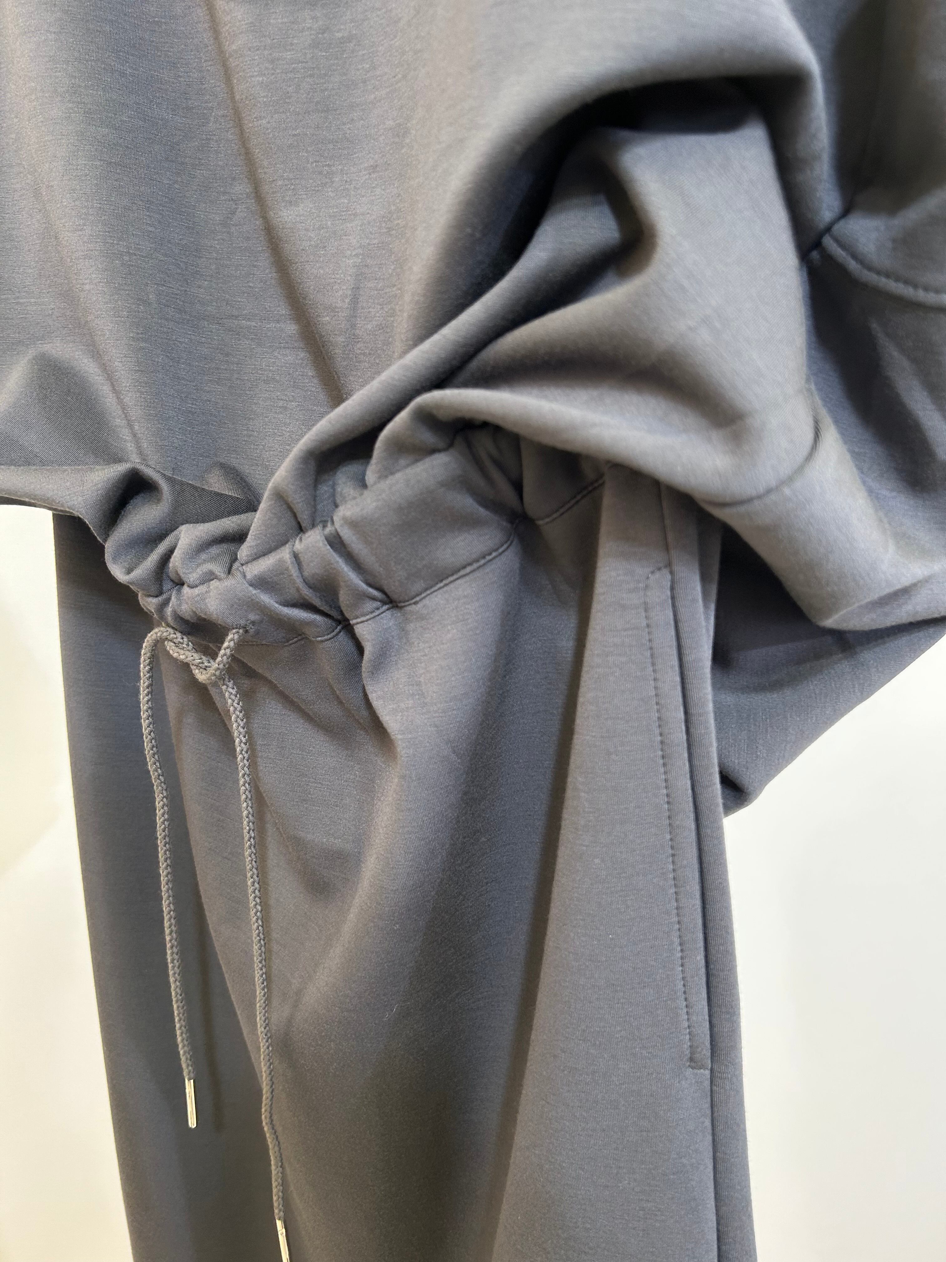 デザインの特徴は、ウエストのゴムとドローストリングスです。