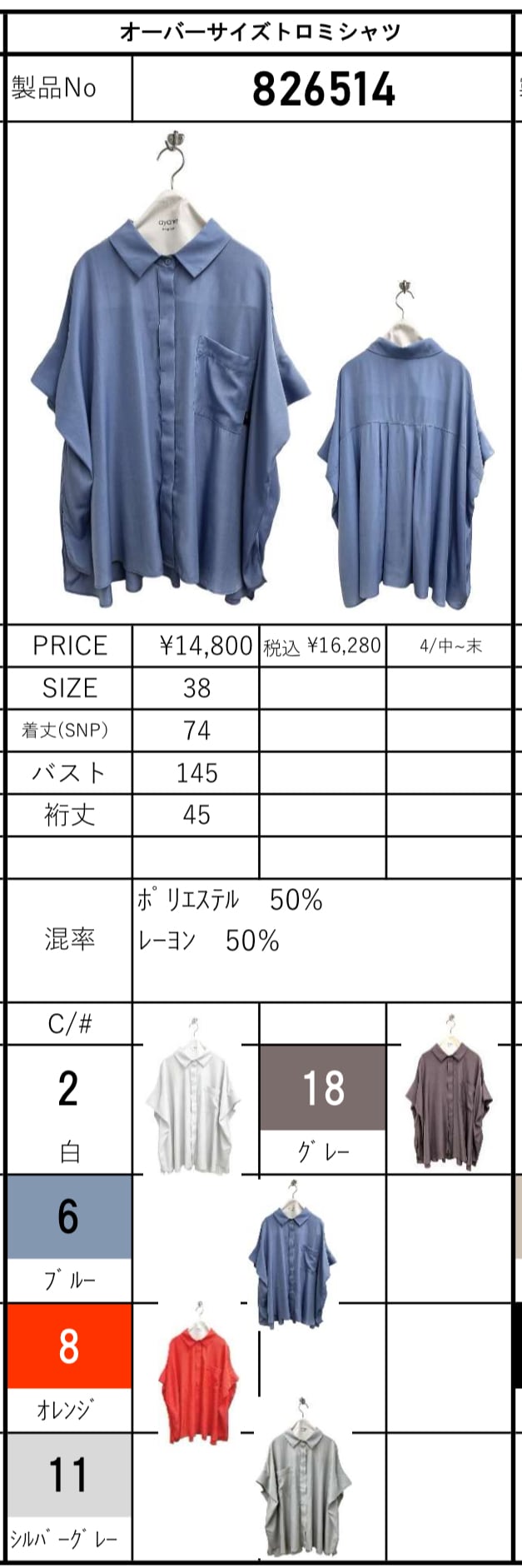 ayaneの夏の新作、826514 オーバーサイズトロミシャツが登場しました!