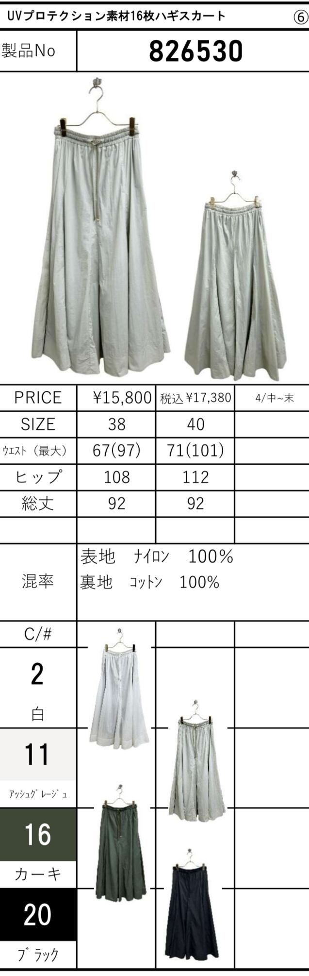 ayaneの夏の新作、826530 UVプロテクション素材16枚ハギスカートが登場しました!