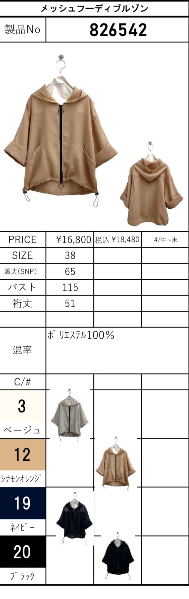 ayaneの新作、826542 メッシュフーディブルゾンが登場しました!
