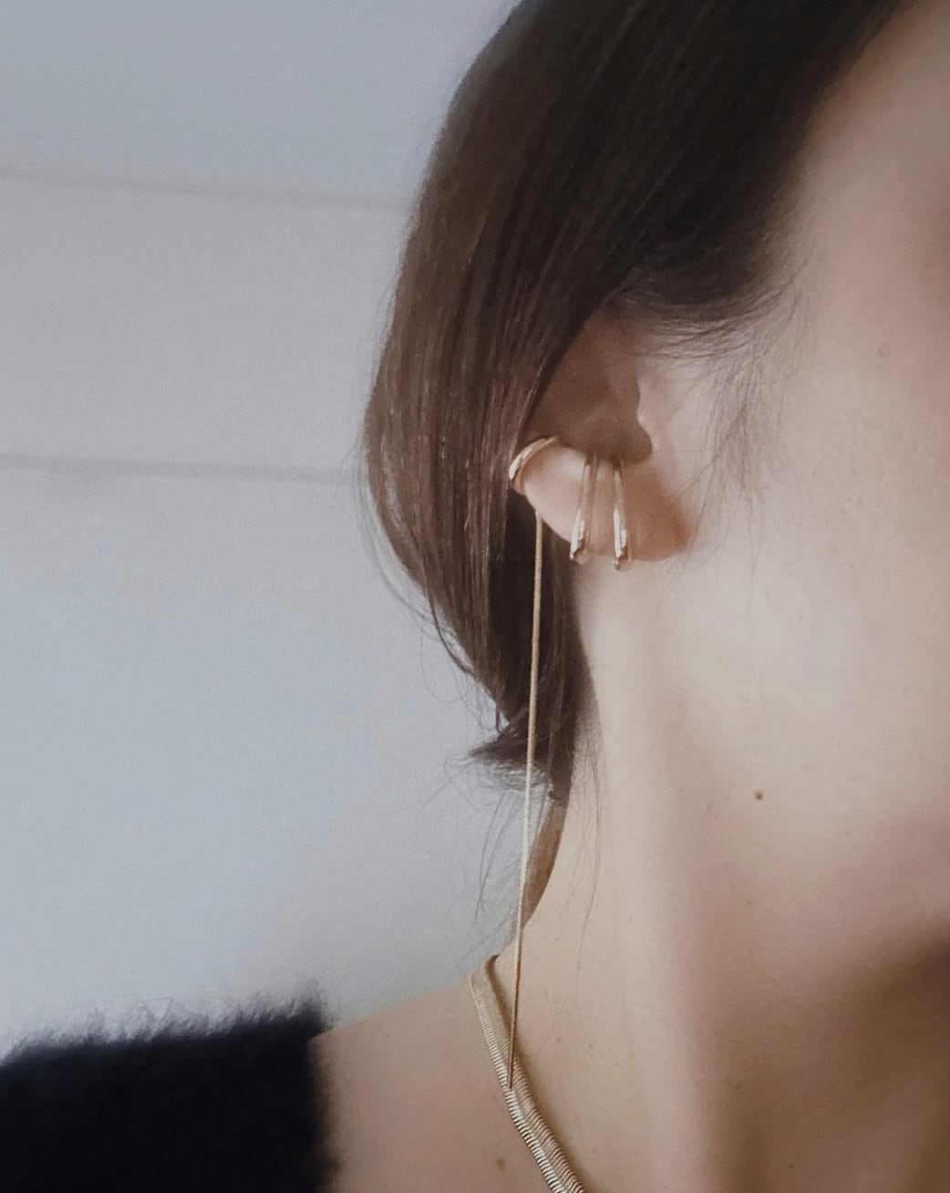 シンプルでありながら高級感あふれるゴールドのイヤーカフ。真鍮を使用しており、耐久性に優れているため、日常使いにも安心してご利用いただけるアイテムです。特有のデザインが魅力的で、さまざまなスタイルに自然に溶け込み、耳元を美しく彩ります。