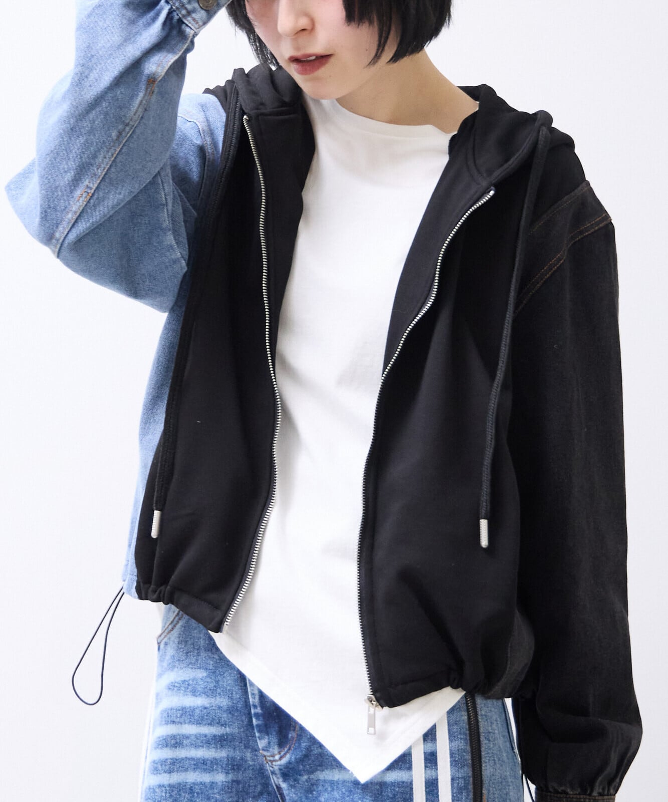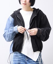 異素材スリーブ配色 ジップスウェット パーカー 2026新作ss春物