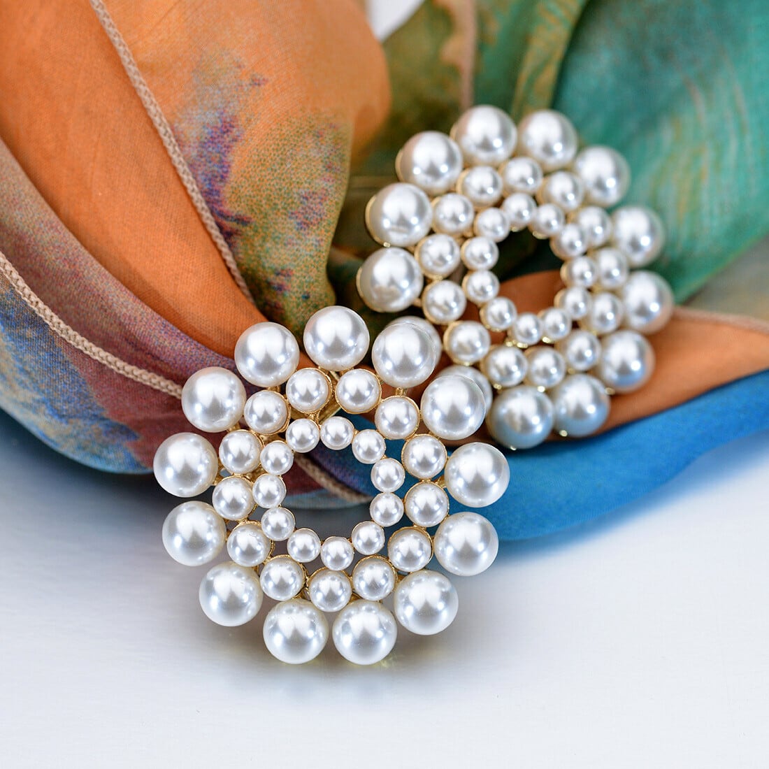 パールビーズデコレートスカーフリング/ブローチ 着物帯留め b1290
