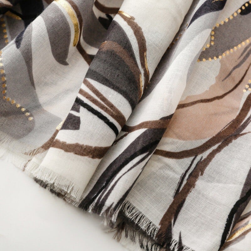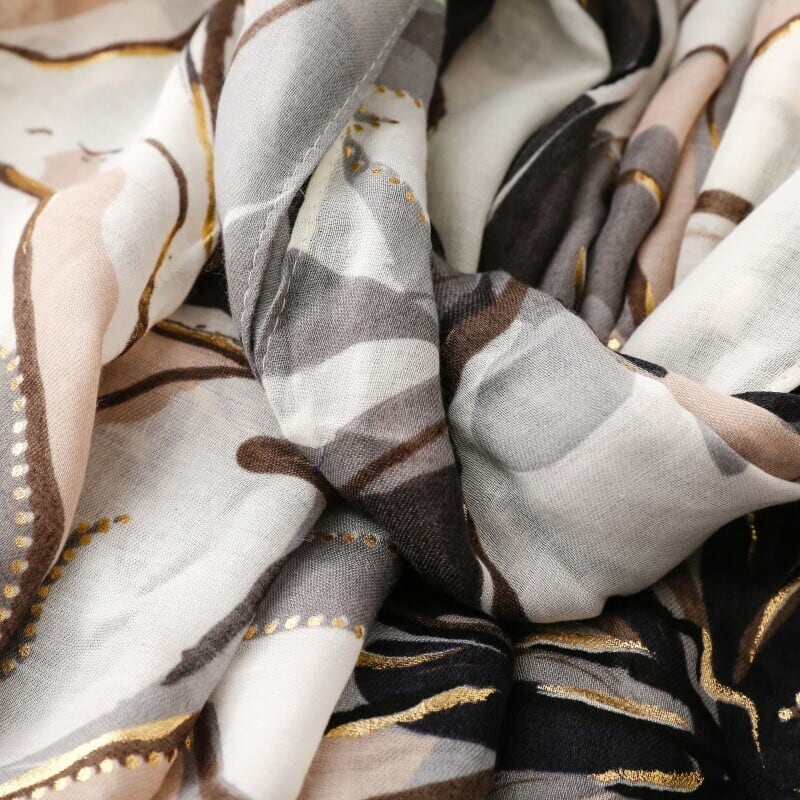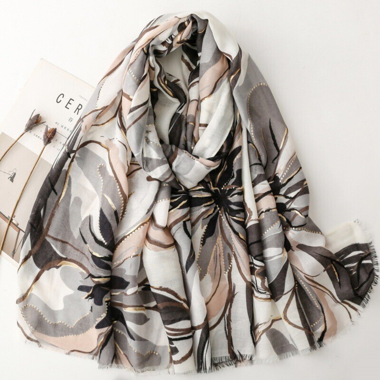 大判薄型 金箔加工 フラワー柄 ストール スカーフ パレオ