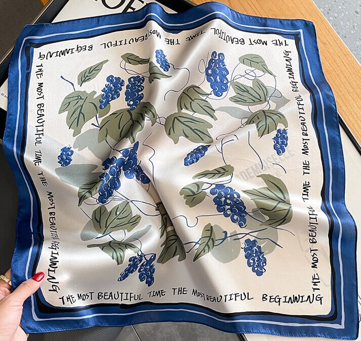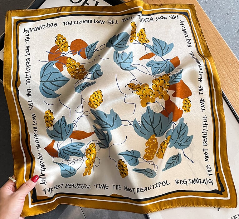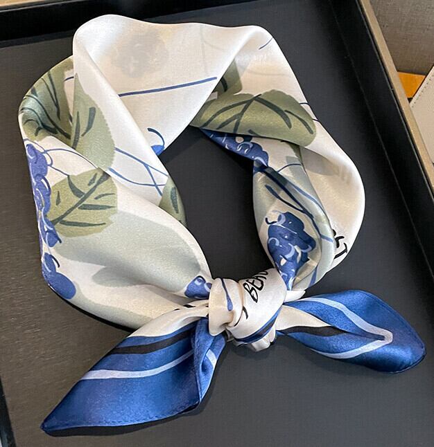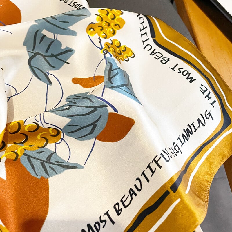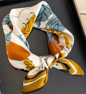 エレガントなプリント柄入り100%シルクプチスカーフ 全2色 04514