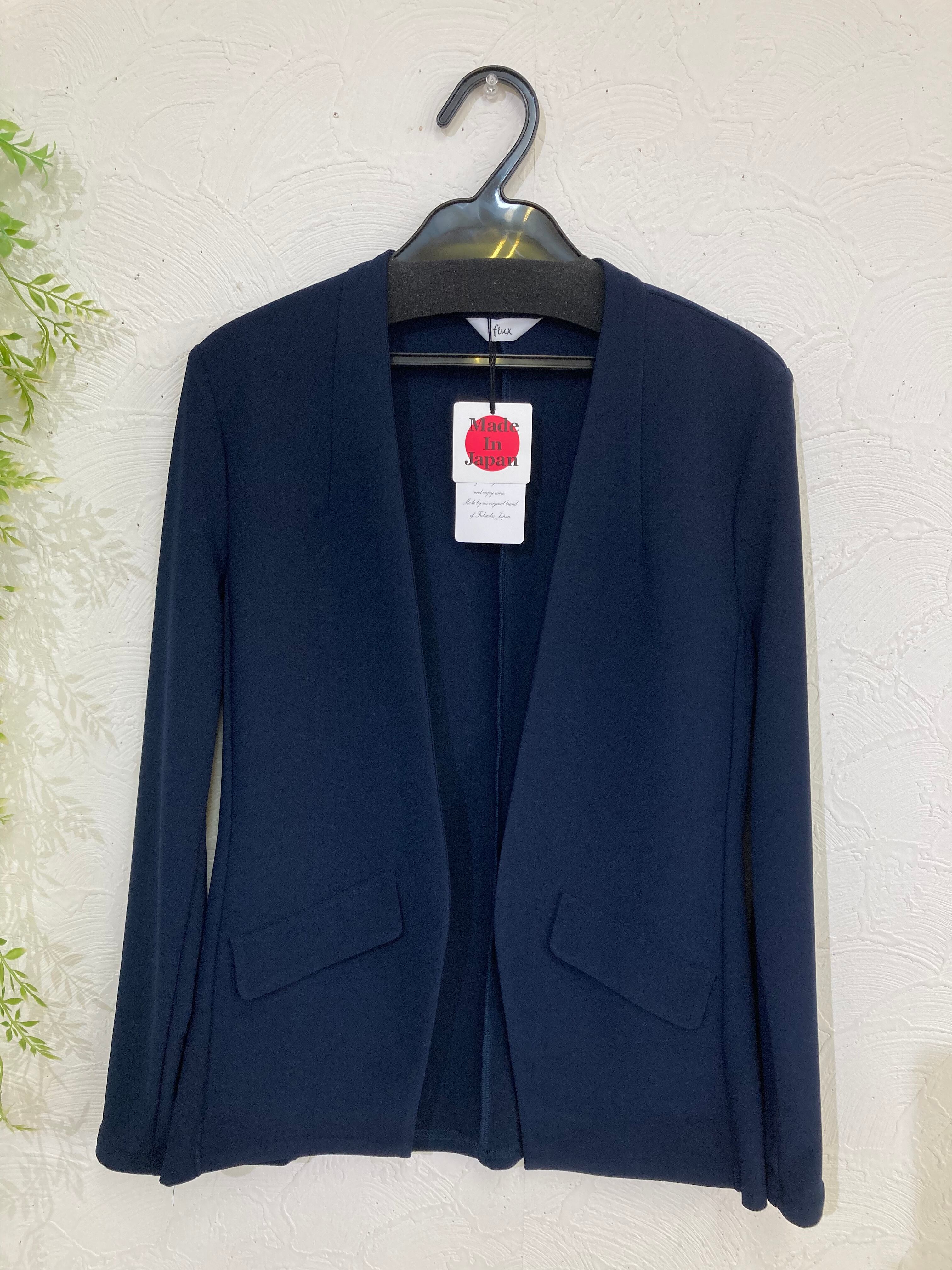 ノーカラーデザイン、フェイクフラップでジャケットのようなきちんと感があるのに着心地は抜群です。