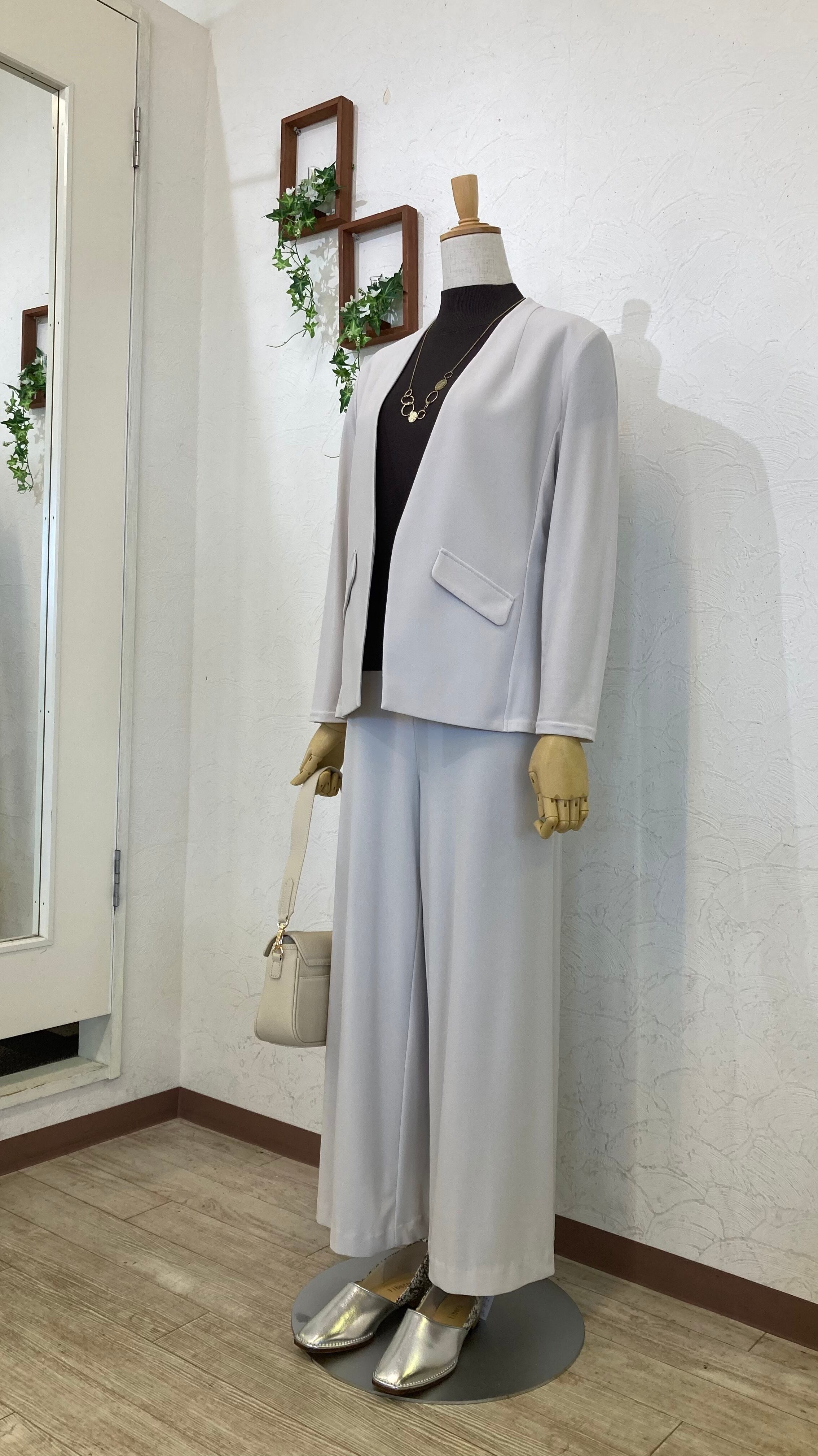 フロントスタイルをすっきりとキレイに見せています。HARUKAジャケットとセットアップ可能なワイドパンツです。