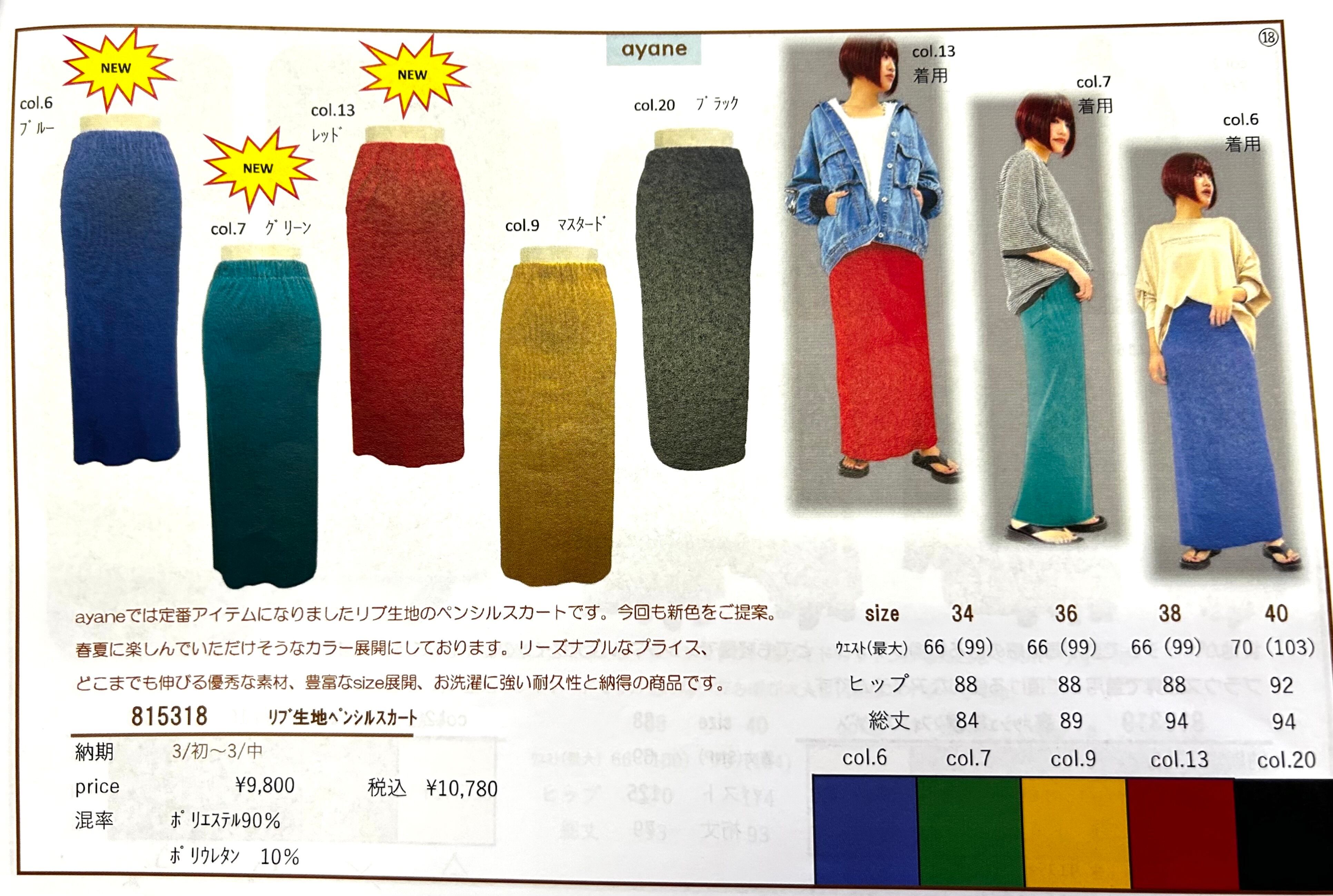 ayane(アヤン)リブ生地ペンシルスカート[レディース]815318